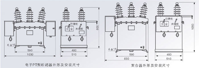 4)若加裝電壓互感器、自動重合控制器、自動分段控制器,可實現配電保護自動化和“四遙” (遙測、遙信、遙控、遙調)功能加裝了復合控制器(消除合閘涌流)