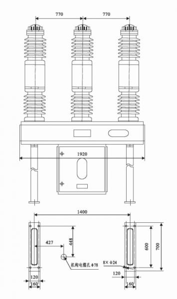 斷路器采用三相瓷瓶支柱式結構,為戶外設計,三相配用一個彈簧操動機構,居中布置。